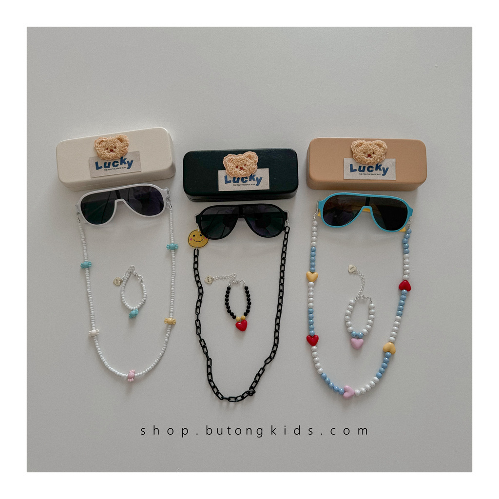 ネットの赤い新型の子供の日よけのサングラスはメガネのチェーンの熊のメガネの箱のスーツの洋気の女性の赤ちゃんの百合のブレスレットを持ちます。