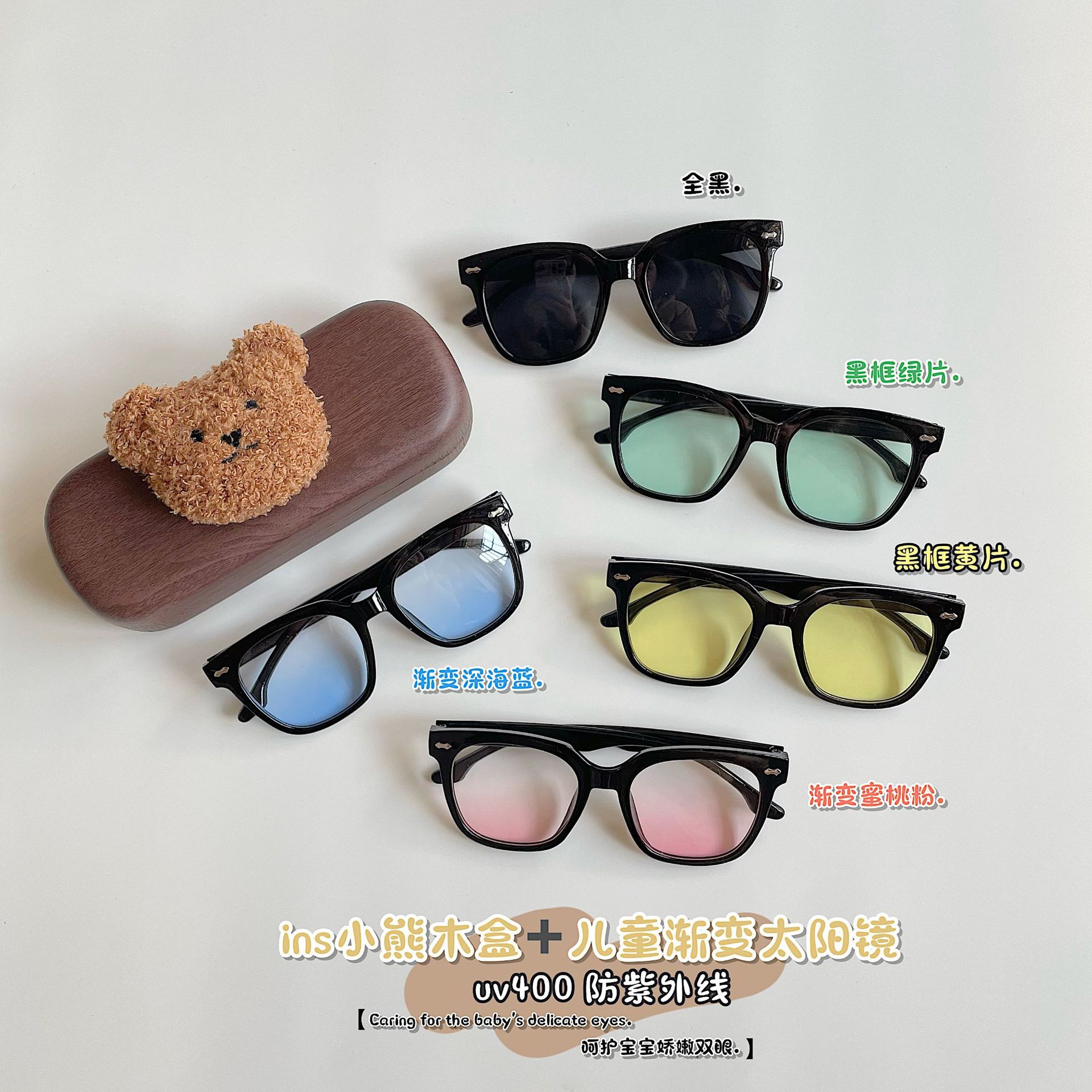 春夏新作グラデーション色子供サングラスins熊木箱セット赤ちゃん日よけ紫外線防止サングラス