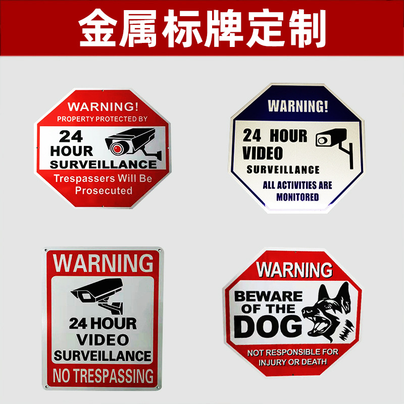 アルミ製24hour監視標識八角形監視犬札対外貿易輸出金属消防標識警告札