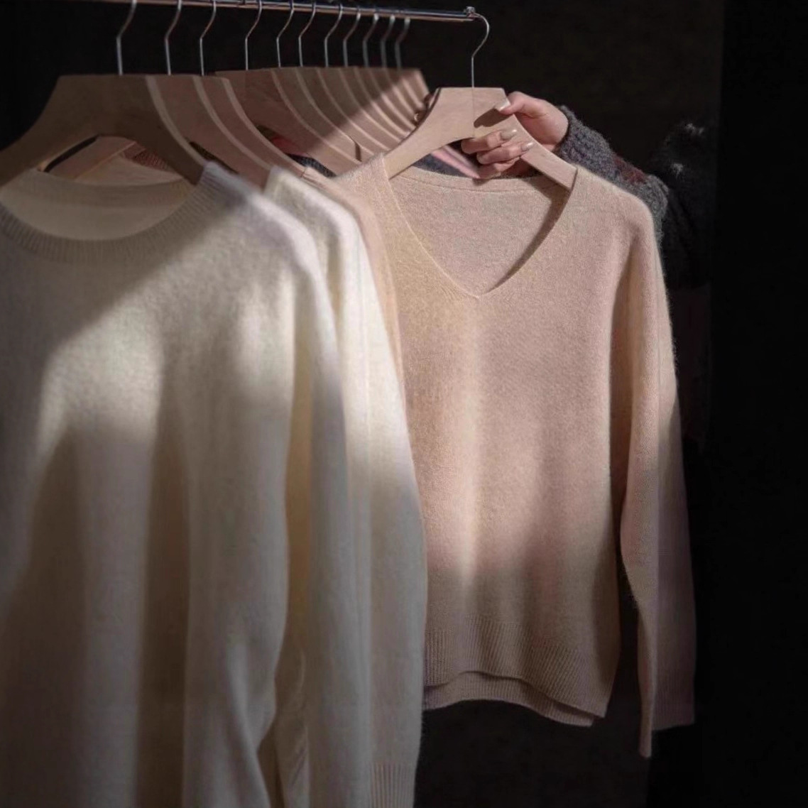 【起毛シリーズ】カシミヤ5% ウール95% ラウンドネック/Vネック シームレス起毛カシミヤセーター レディース セーター 25年新作