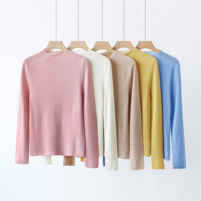 洗濯機で洗えるハーフタートルネックレディースセーター、シームレス100%ピュアウールセーター、初秋薄手ニットインナーウェア、婦人服