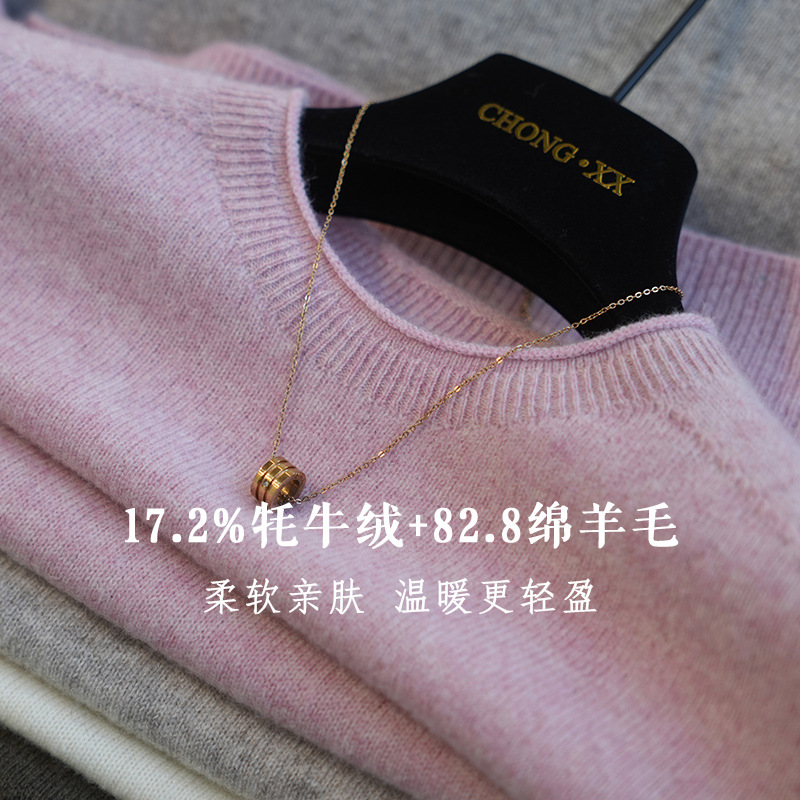 ヤクウールカーリングラウンドネック長袖純色ニットカジュアルセーター上着秋冬新作F100410