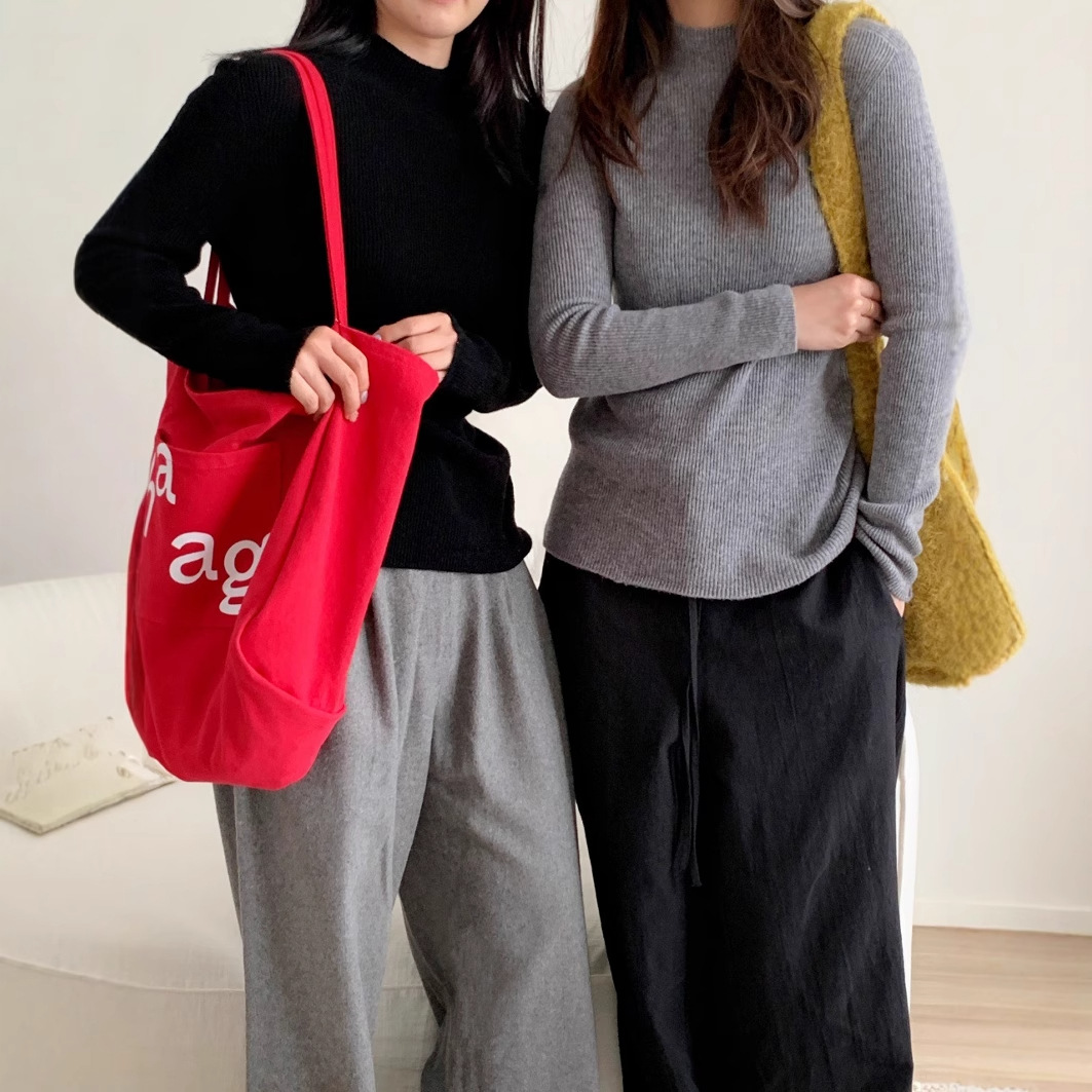 605秋冬の高襟長袖tシャツの上着の女性の薄いモデルのウールのセーター