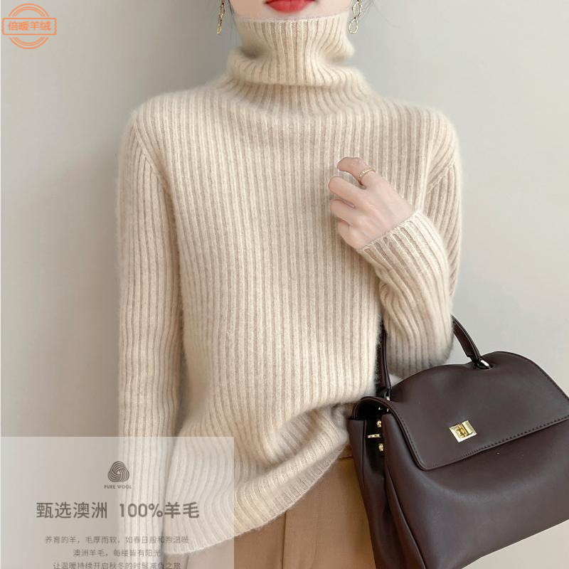 坑条100純ウールのセーターの女性の新型の洋気の山の高い襟の底の上着の秋冬の中は頭の厚いセーターをかぶせます。