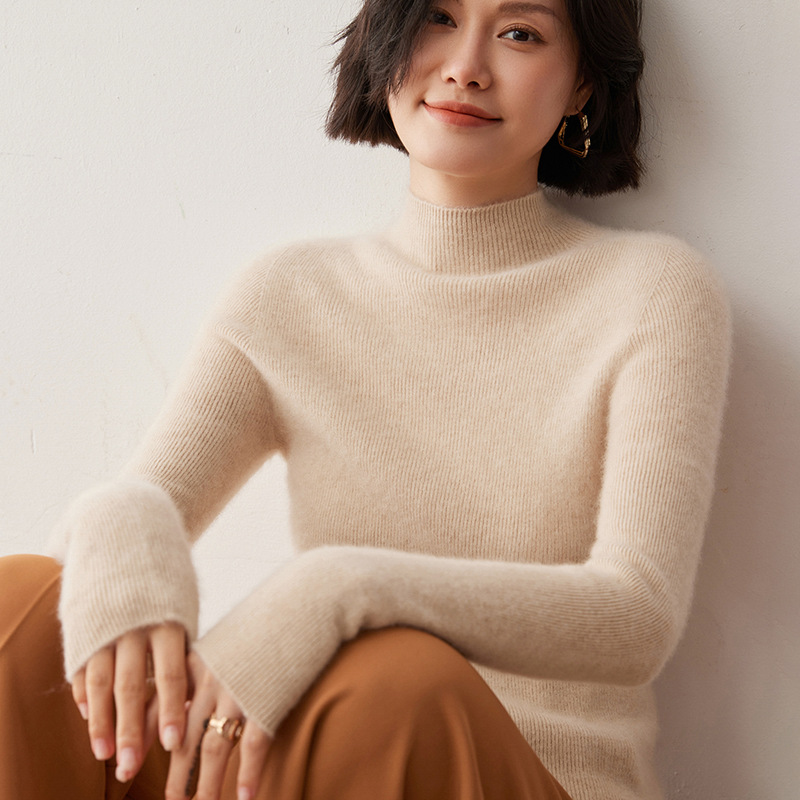 半高襟のウールのセーターの女性24秋冬の新型の修身はやせています。