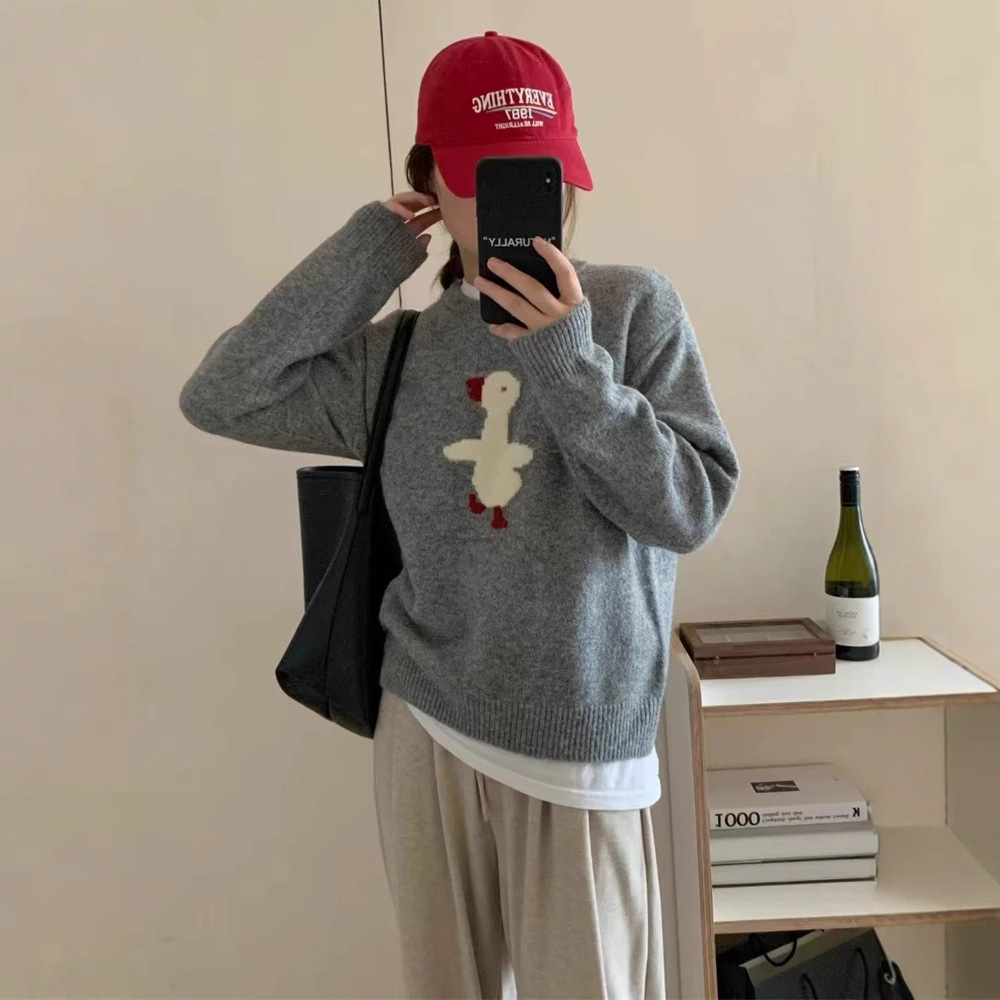韓国系かわいい減齢アニメアヒルのセーター女性秋冬優しい柔らかいモチモチのデザイン感ニット上着女性