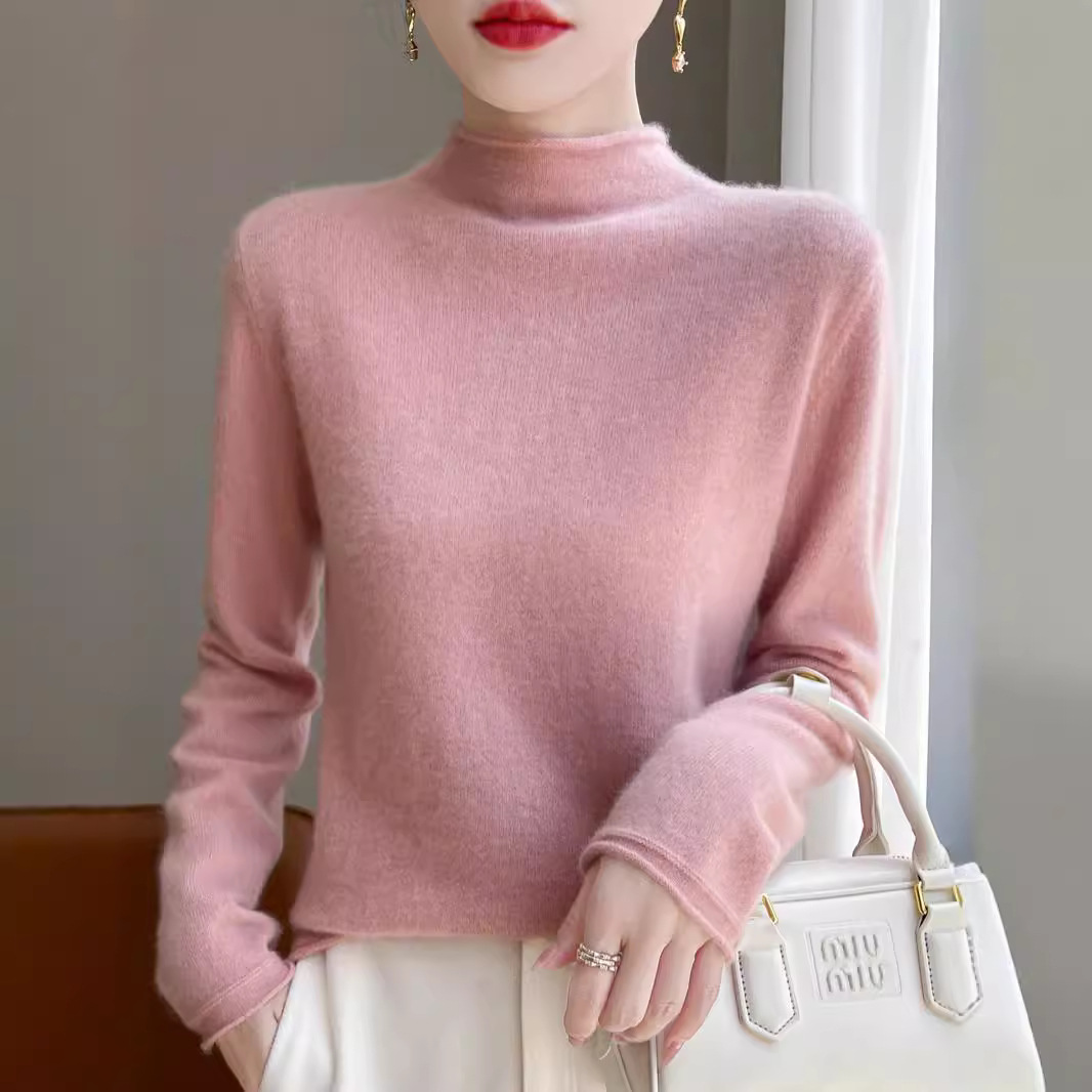 ハーフタートルネックマカロンカラー保温トップスニット100%純毛婦人服セーター180g薄手