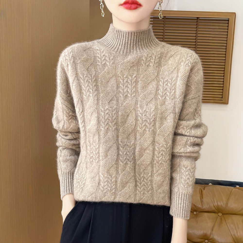 秋冬厚手100純ウールセーター女性半高襟ゆるい女性カシミヤセーター長袖ニットシャツ新