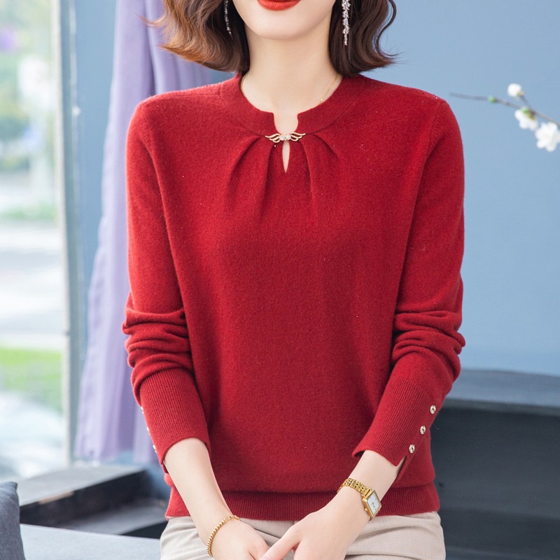 新中国式の国風の本命年のお母さんの赤いセーターの中年の婦人服の秋冬の100% の純粋なウールのシャツの底の上着