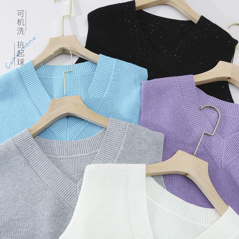 在庫あり~MOOND*L Vネックセーター レディース 24秋冬 シンプル ゆったり レイジースタイル 無地 ウールカシミヤセーター