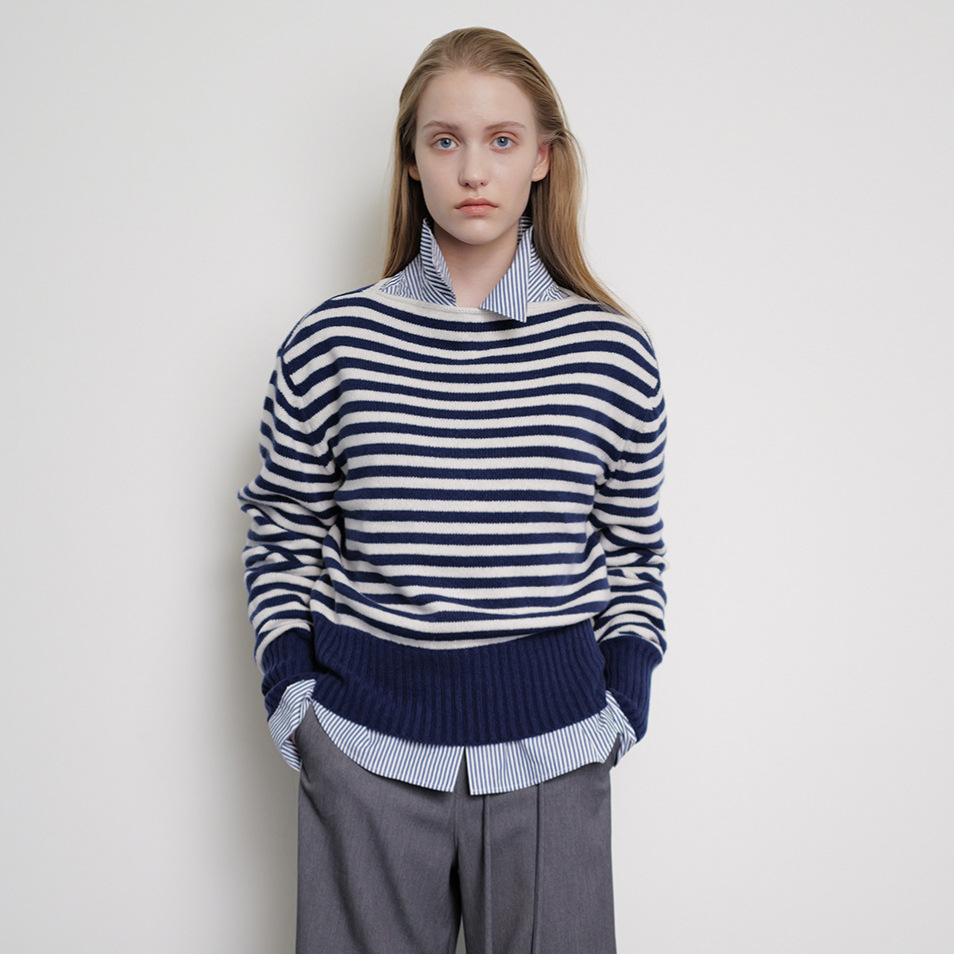 今〜韓国 MOOND*L ウールセーター女性のための 24 秋と冬の新しいファッション気質多用途ボートネックカシミヤセーター