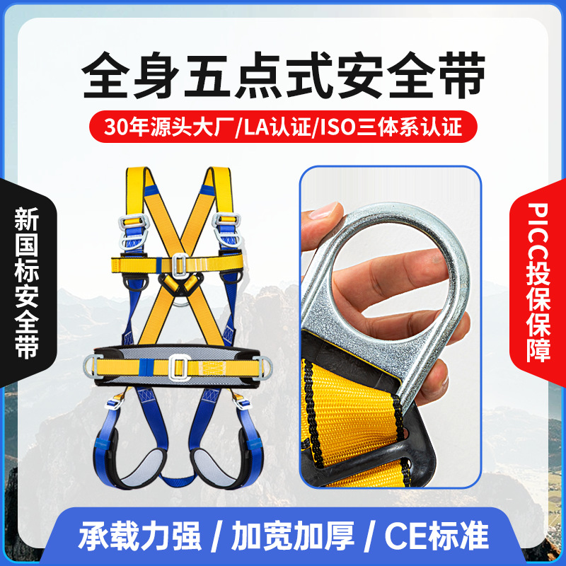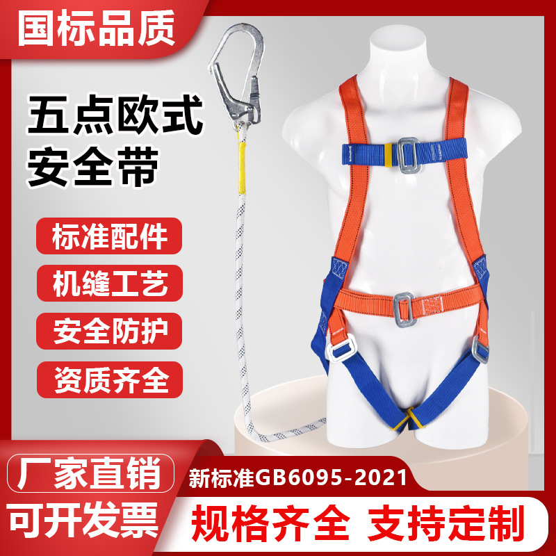 新しい国家標準ヨーロッパスタイルの全身5点式クイックプラグイン安全ベルト高所作業用安全ロープダブルハンギング大型フック落下防止