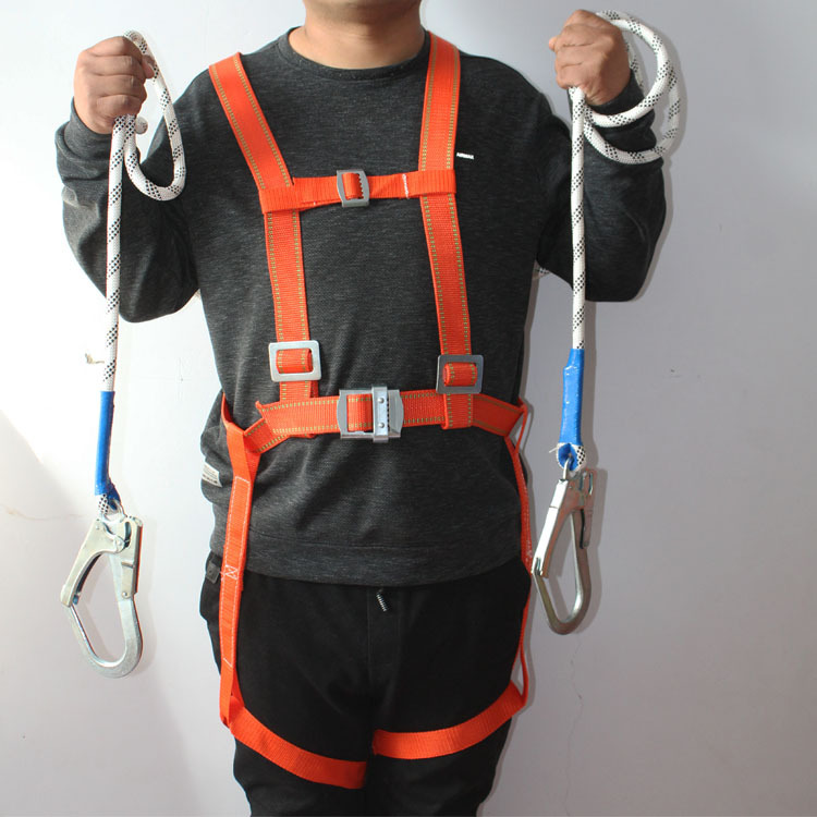 緩衝安全ロープクライミング保険ロープダブルフック5点式高所作業安全ベルト