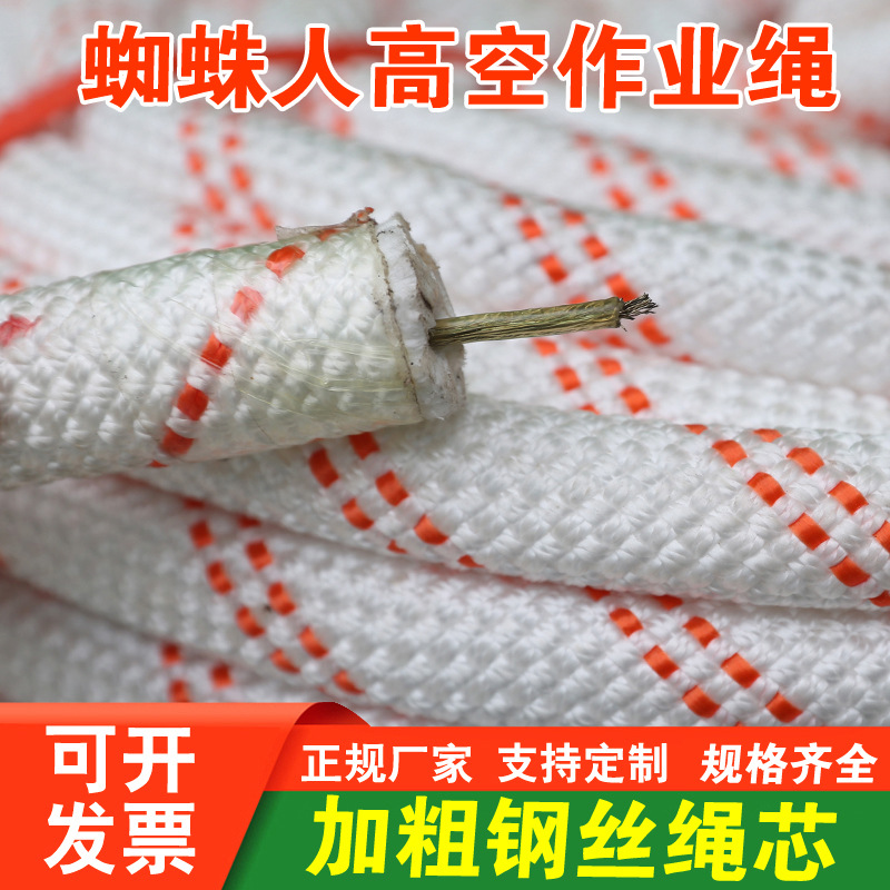 安全ロープ、登山ロープ、高所作業用登山ロープ、高強度ポリプロピレンポリエステル編組ロープ、鋼線芯安全ロープ