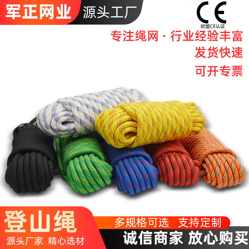 ナイロン登山ロープ屋外高所作業落下防止安全救助ロープ耐摩耗性登山速降避難静力ロープ