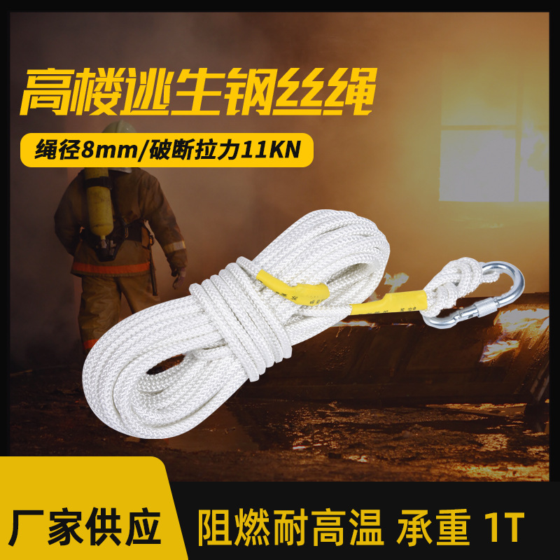 消防避難ロープ緊急生存安全ロープ登山クライミング屋外静力ロープ鋼線内芯8mm