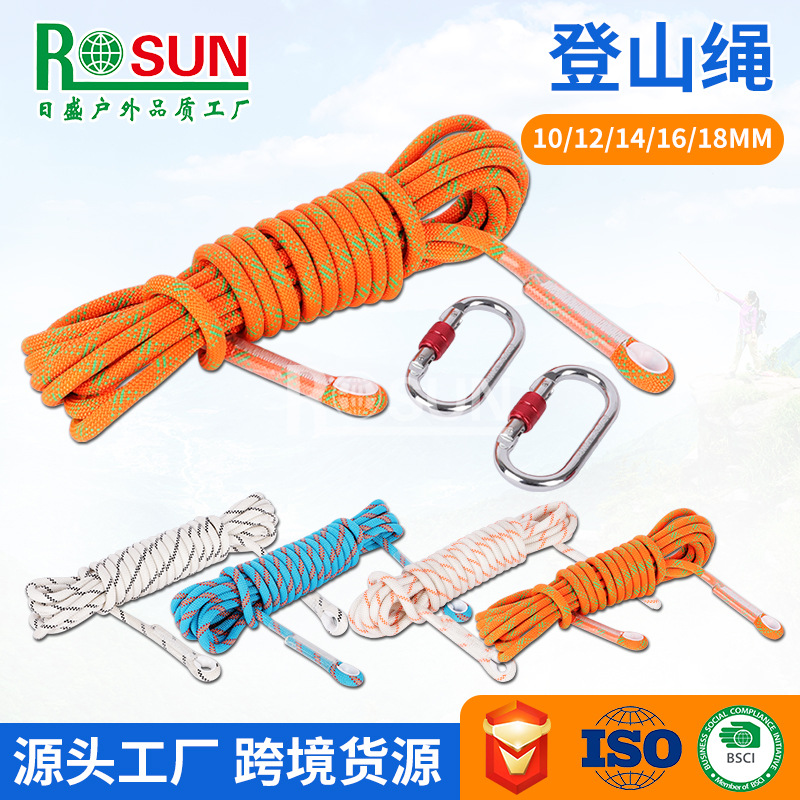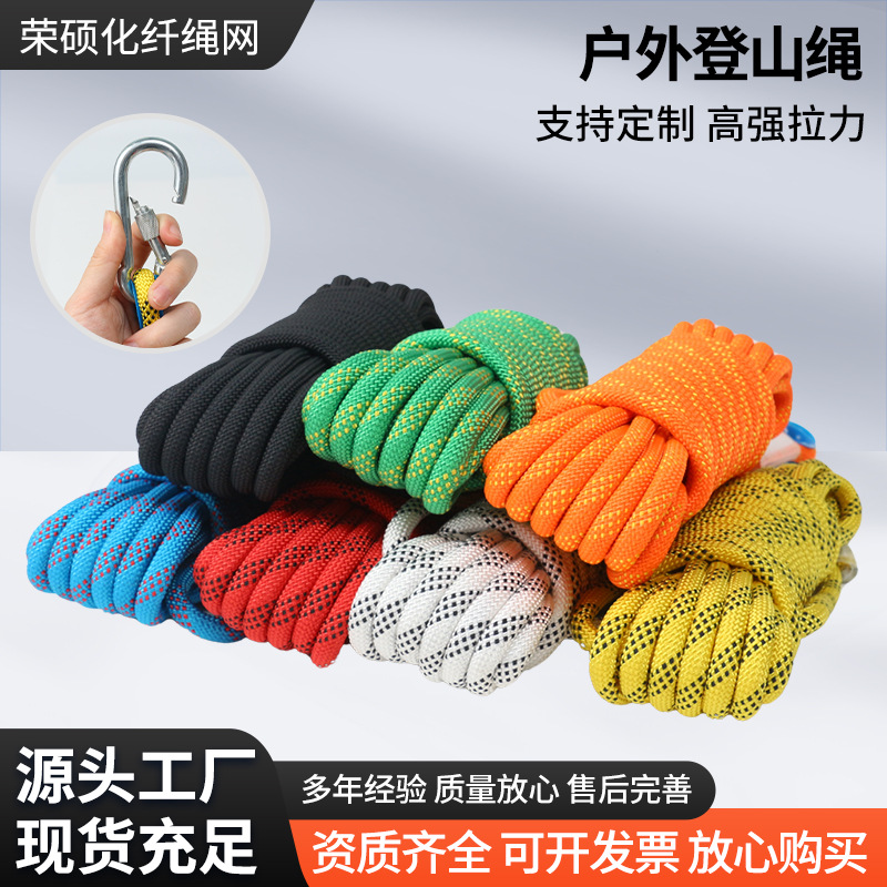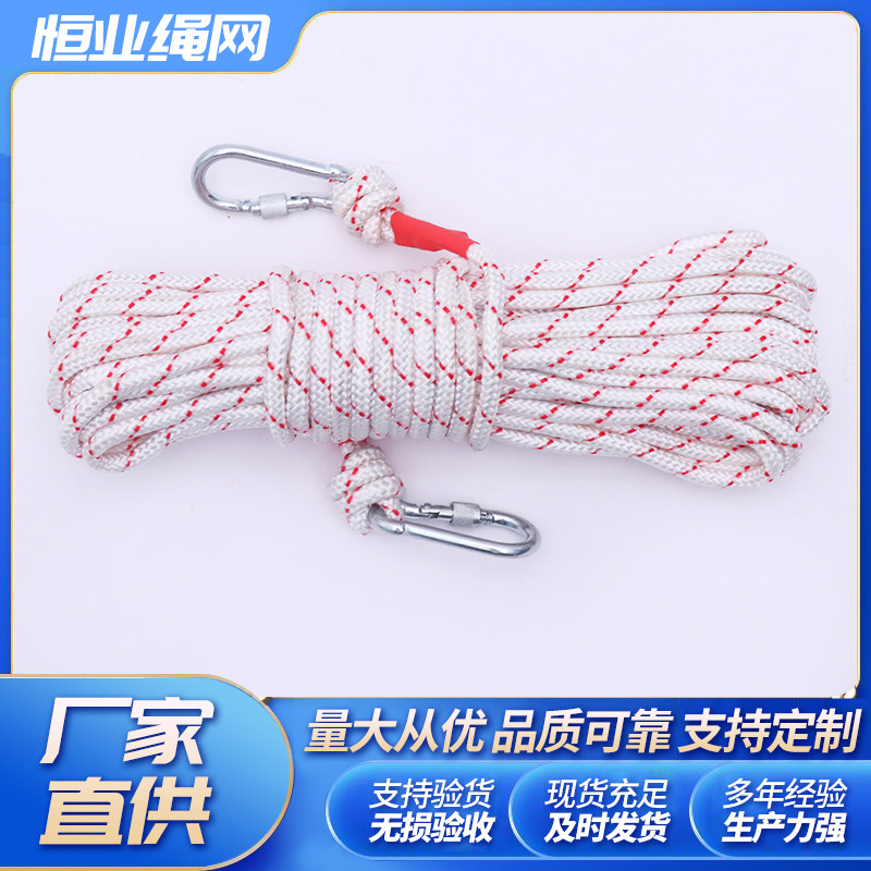 登山ロープ屋外登山速降防護ロープ静力ロープ現物ダブルフックカラーナイロンロープ上空安全ロープ