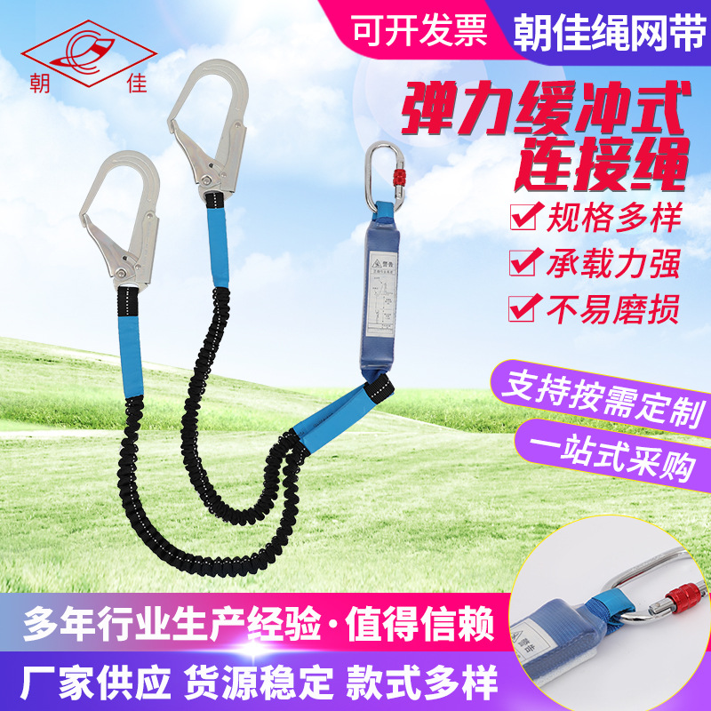 ダブルフック安全接続ロープ弾力緩衝落下防止接続安全ロープベルト落下防止免震電気保険ベルト