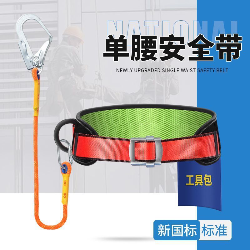 シングルウエスト安全ベルト電気技師安全ベルト高所作業落下防止ベルトフックセットポリエステル国家標準安全ベルト