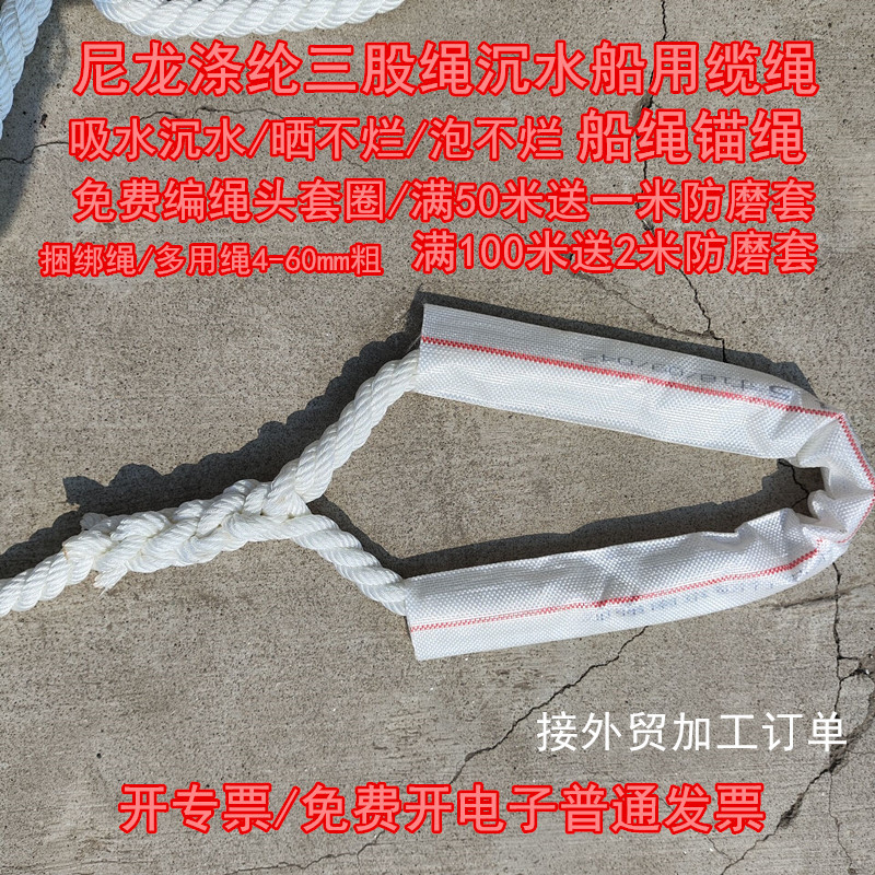 船用ロープ耐摩耗性ナイロンロープポリエステルロープ高強度三本ロープ牽引ロープスキミングロープ沈水アンカーロープ