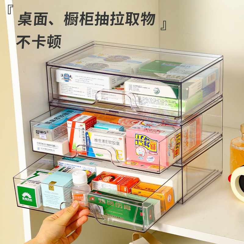 薬箱引き出し型収納ボックスデスクトップ積み重ね化粧品雑貨収納ボックスオフィス文具多層整理ボックス