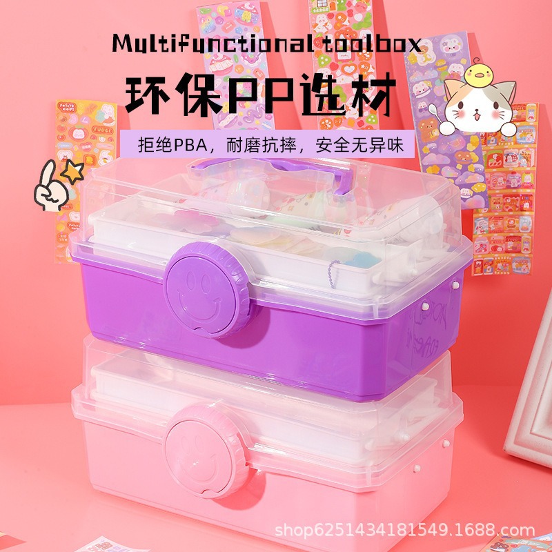 メーカー直販pp家庭用医薬箱厚さ二重収納ボックス家庭用化粧品収納ボックス携帯文房具