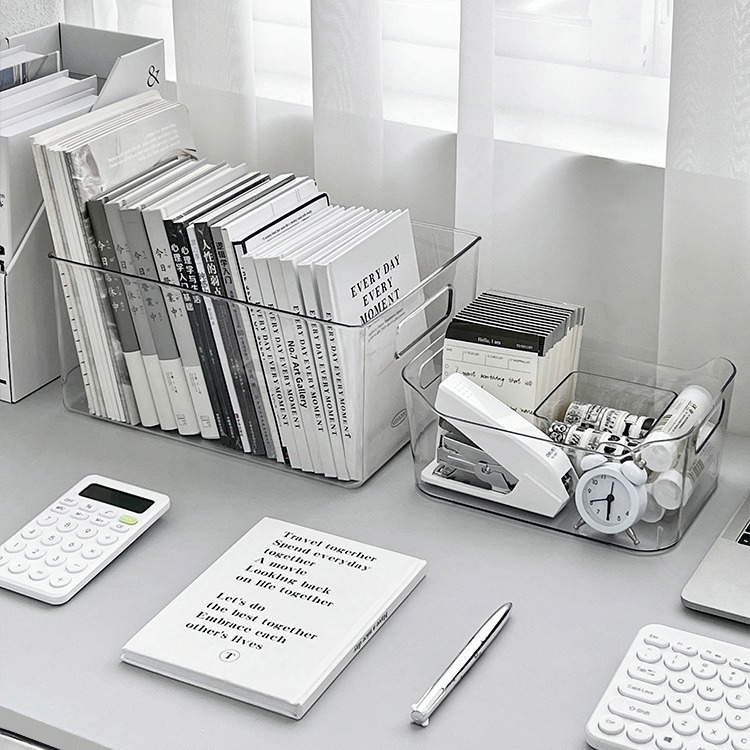 アクリルデスクトップ収納ボックス透明寮デスク文房具本棚大容量オフィスファイルバスケット