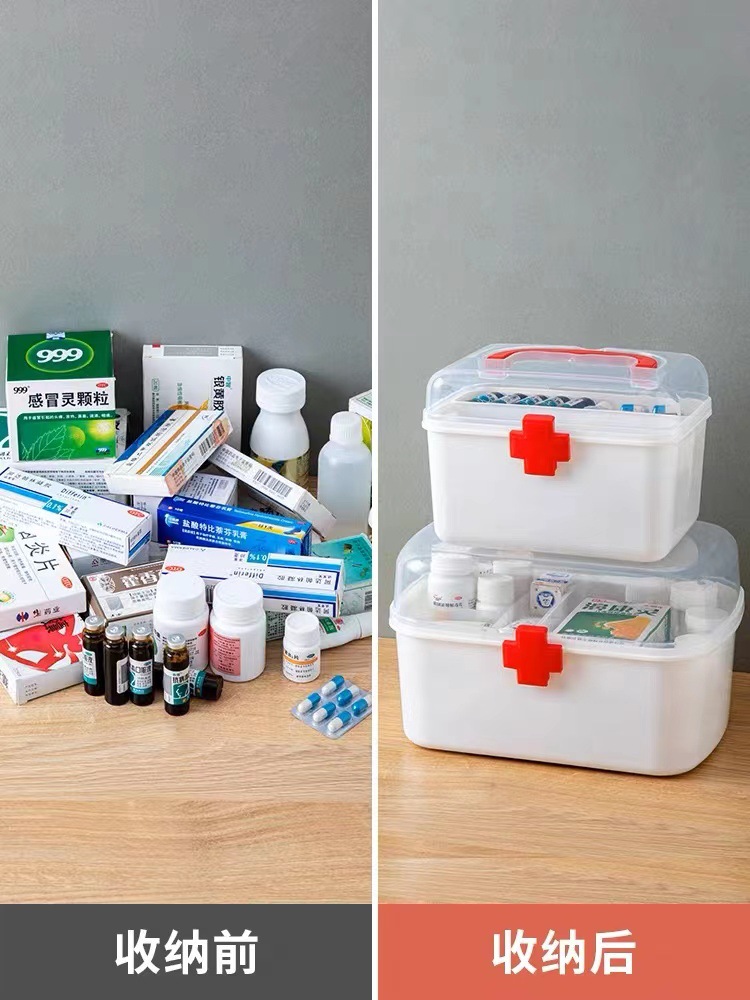 家庭用救急箱携帯医薬箱二重ハンドル薬箱大容量デスクトップ寝室雑物文房具収納箱