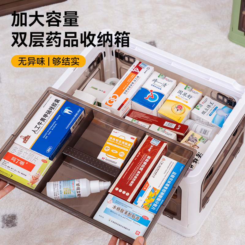 薬箱大容量家庭用収納ボックス透明救急薬箱折りたたみ収納ボックス多層特大分類ボックス