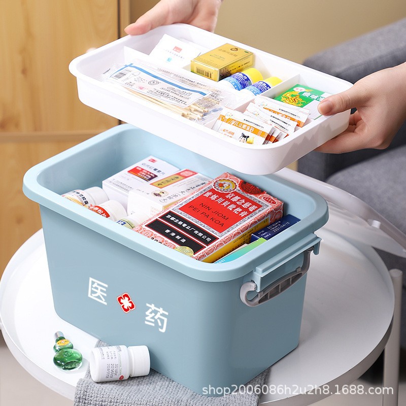 プラスチック医薬箱家庭用救急箱二重携帯用緊急医療収納箱薬品収納薬箱卸売り