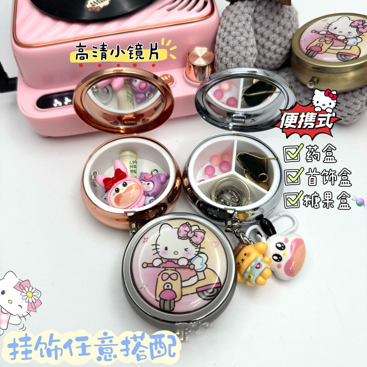 アマゾンのドリップ金属の円形の小さい薬の箱の携帯旅行は鏡の錠剤の箱の3格を持って薬の箱を分けて分けます。