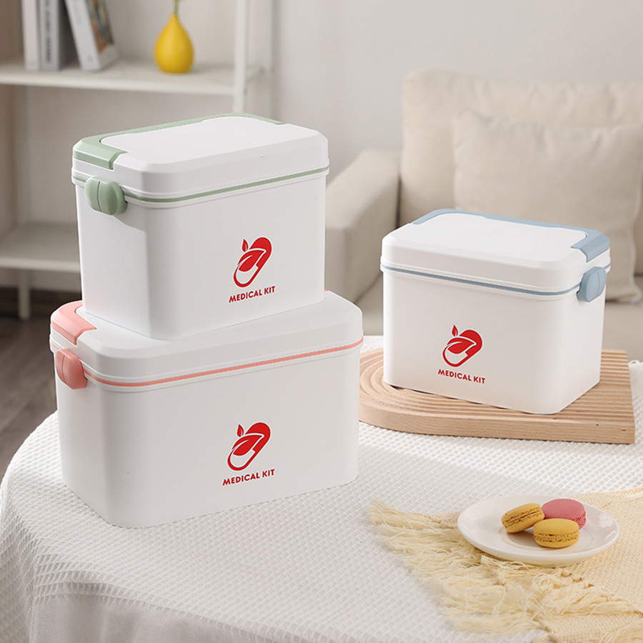 医療用小型薬箱 寮用二層式 家庭用収納ボックス ポータブルで便利な医療ボックス ロゴ印刷可能 工場直販