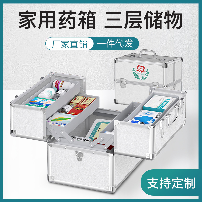 総合家庭薬箱大救急セット二重薬箱収納家庭用緊急アルミ合金薬箱セット