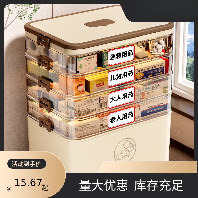 薬箱家庭用多層大容量携帯緊急常備薬小薬箱家庭用薬品収納箱