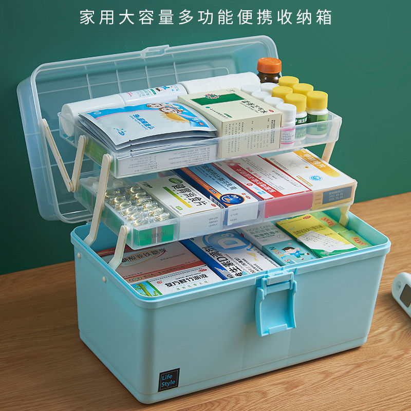 薬箱家庭用大容量医療救急箱医療三層薬厚みのある収納ボックスホームスーツケース