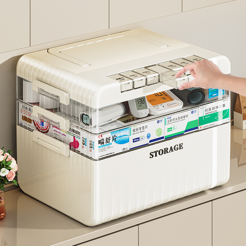家庭用携帯救急薬箱大容量二重防塵薬収納箱卸売り分格透明多層薬箱