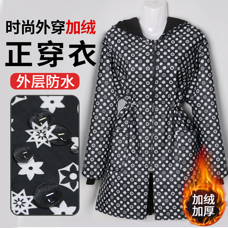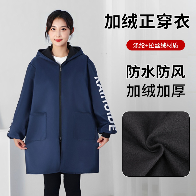 秋冬ベルベット防水長袖ブラウス厚手の服保温コートキッチンエプロン防汚作業服大人