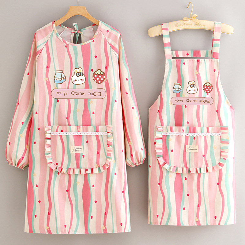 2024新型綿布通気エプロン夏の小清新家庭用キッチン料理韓国版女性ファッションウエスト