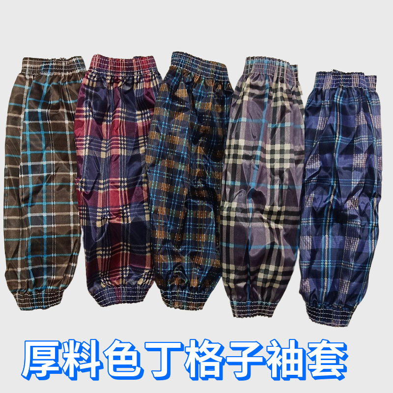 長くて厚みのあるサテンチェック柄の防水スリーブ、防汚・耐油性、キッチン作業用、防汚性、傘布ハンドスリーブ、家庭用