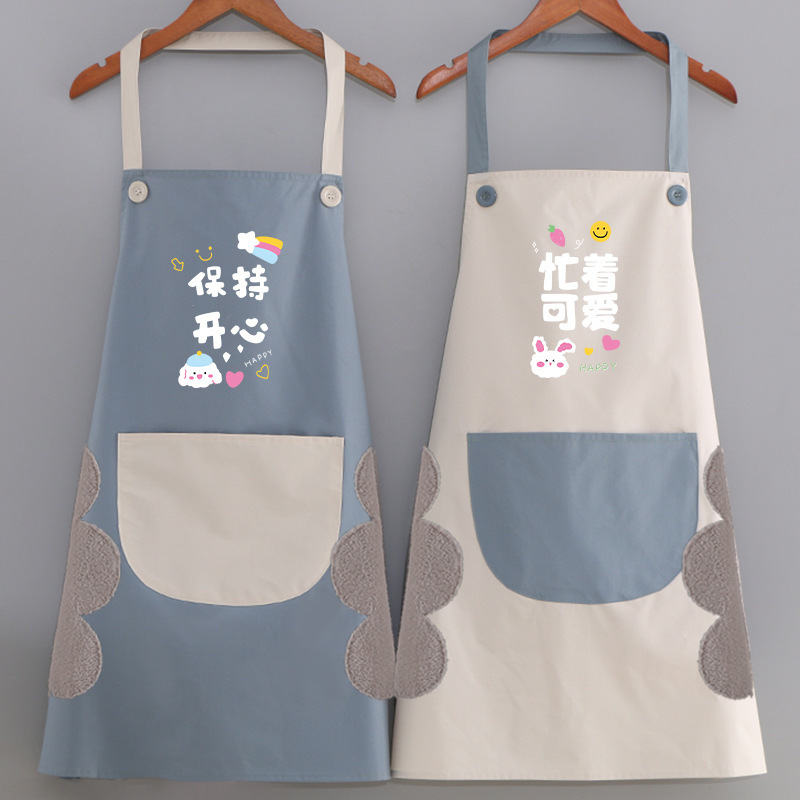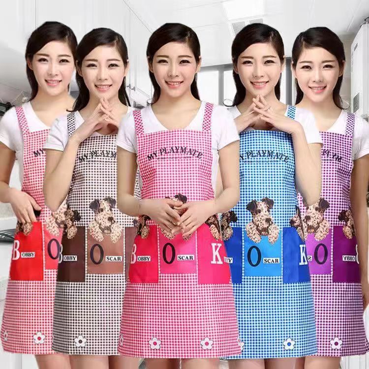 メーカー新作、様々な柄のピーチスキン素材のストラップ付きおしゃれな防汚家庭用エプロン、卸売販売