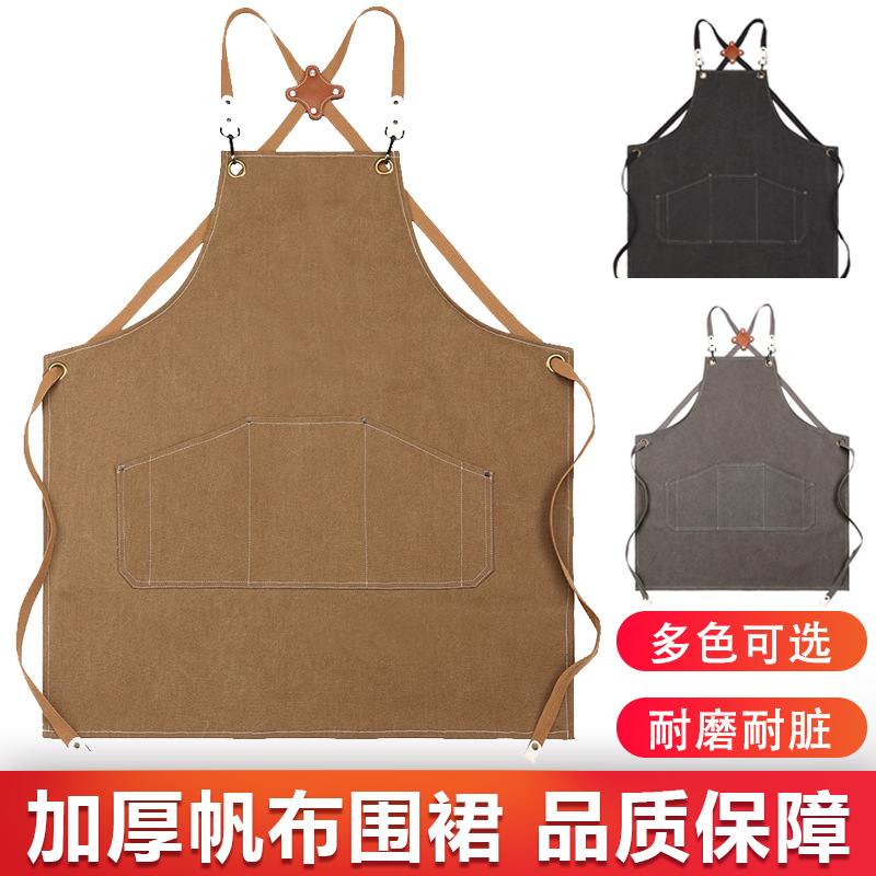 耐摩耗性アウターウェア、洋風厚手キャンバスエプロン、キッチン、家庭作業、汚れにくいキャンバスエプロン、ロゴ入り