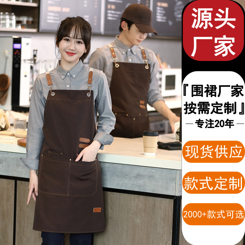 キャンバスエプロンカスタムロゴ印刷ネイルアートベーキングコーヒーミルクティーショップ理容室防水作業服女性クロスボーダー