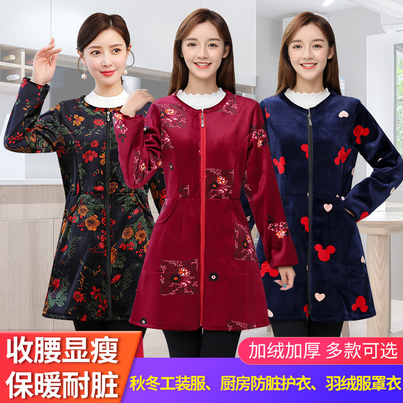 水晶の絨毯の服の大人の仕事のエプロンとベルベットの厚い長袖の保温防汚秋冬のコーデュロイ作業服