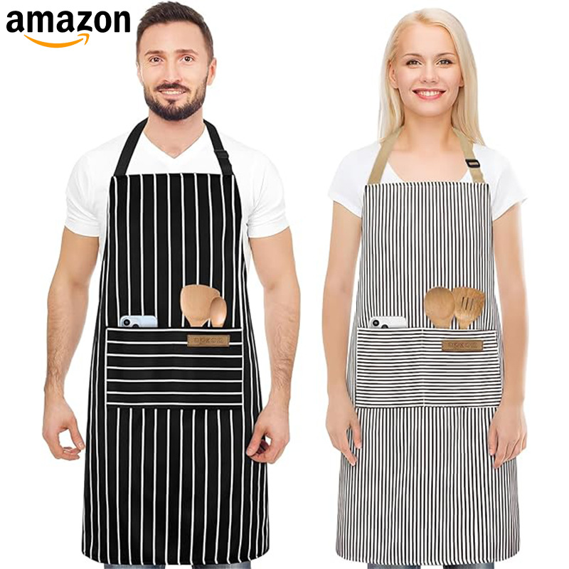 国境を越えた対外貿易は首を掛けてロゴをカスタマイズして綿麻の縞の台所を印刷して家庭用飲食エプロンの卸売りを焼く