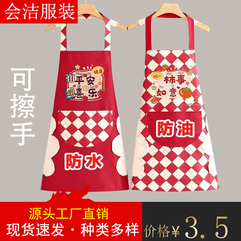 新しいスタイルのエプロンキッチン家庭用防水性と耐油性新年漫画ケータリング調理エプロン幸せな出来事汚れにくい作業服