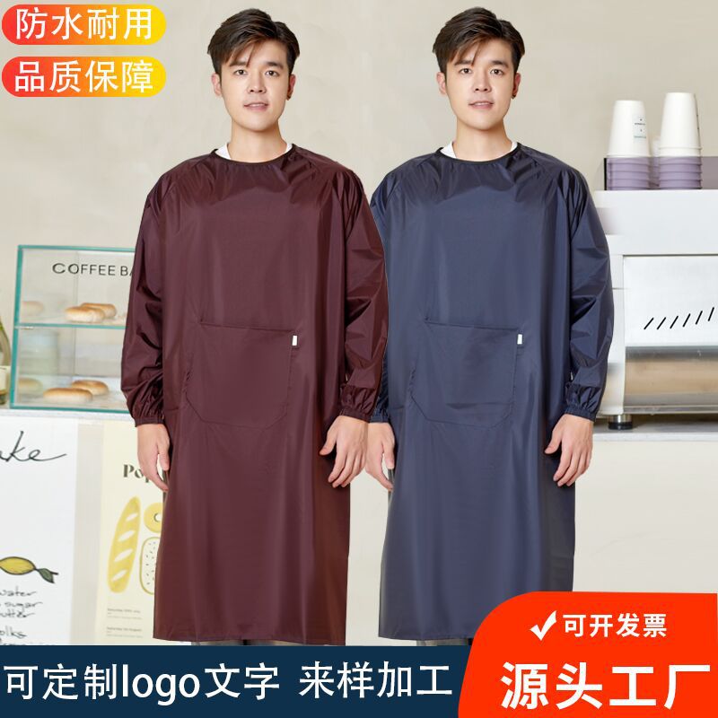 新しい逆着カバー長袖毛のない男女エプロンの薄い家庭用キッチン防水防油作業服のロゴ