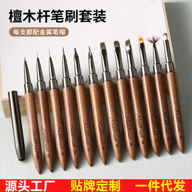 白檀マニキュアブラシ 12 本セット プルラインペン ペイントペン 丸頭ペン スマッジペン ユニバーサルペン デイジーペン カスタマイズ
