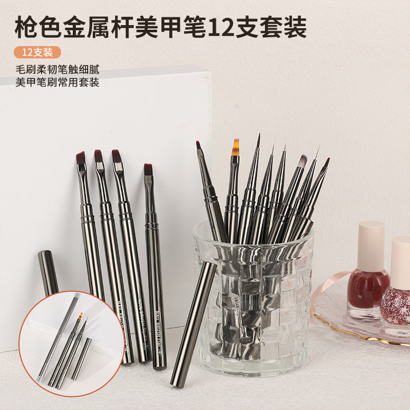 クロスボーダーマニキュアツールペイントブラシフルセット金属棒マニキュア描画ペンフラワーラウンドスクエアライトセラピーペン