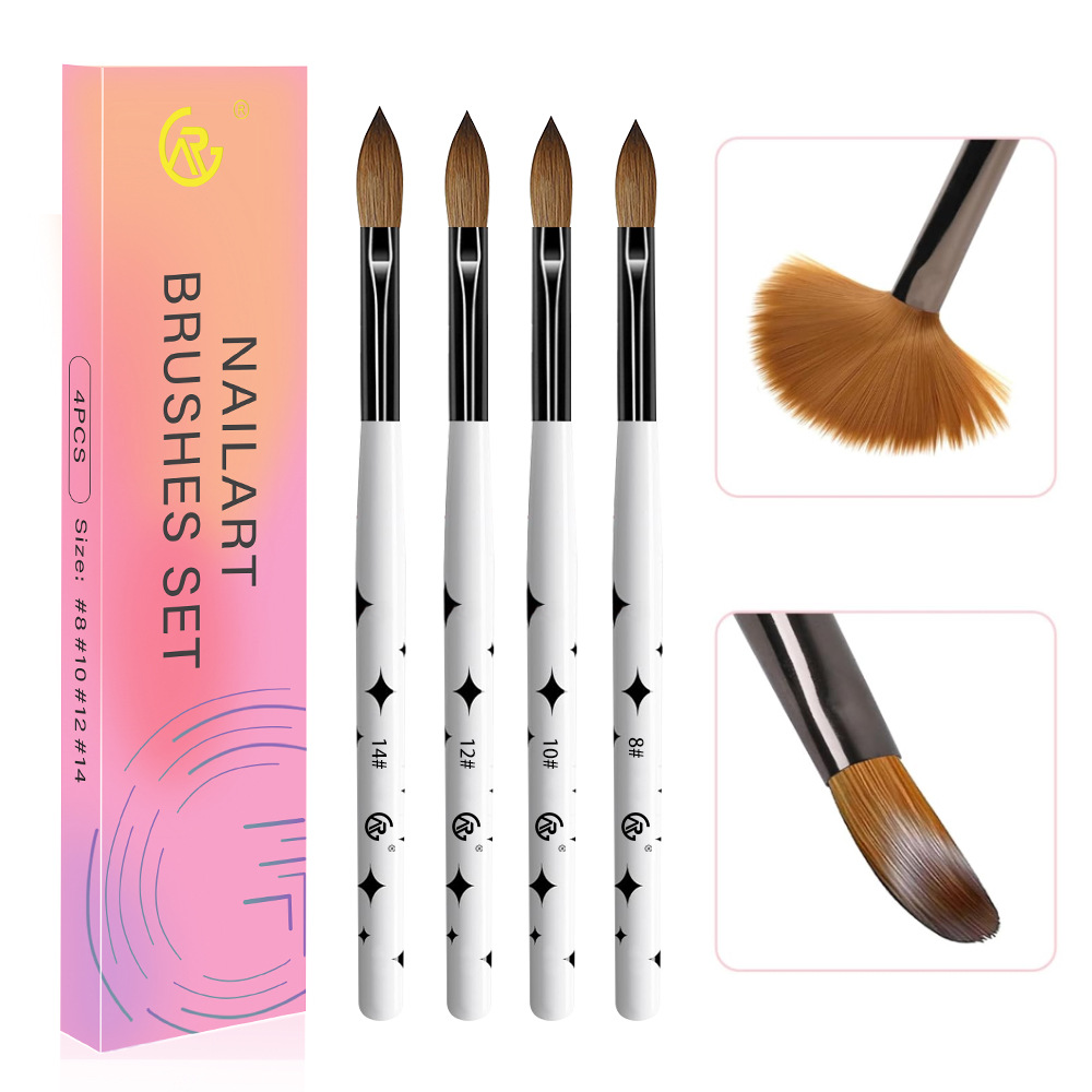 星の水晶の彫刻の爪の筆のセットの箱の4本の水晶のネイルブラシの立体の彫刻の爪の筆