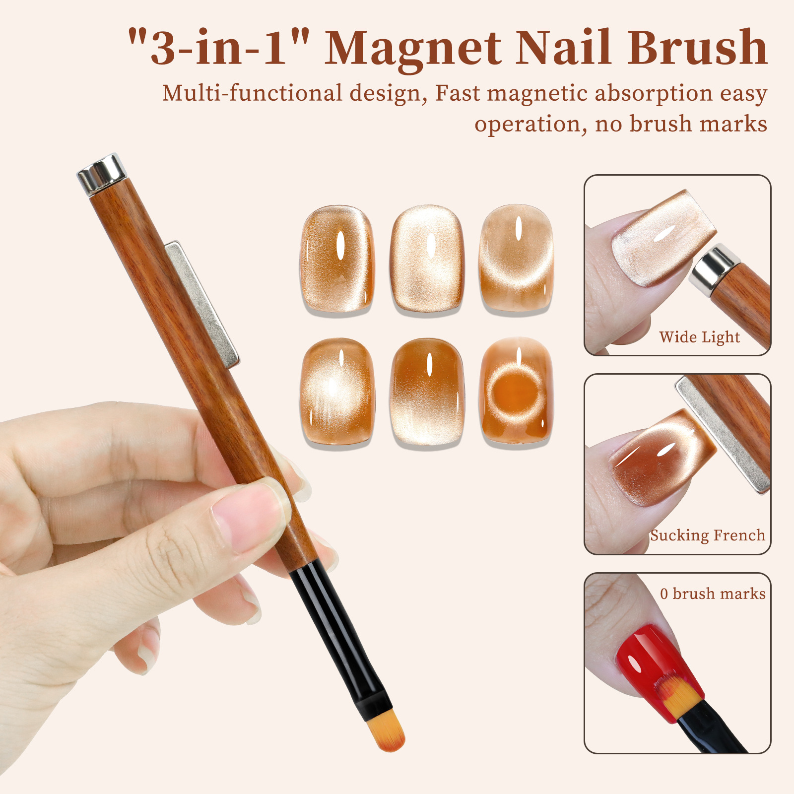 越境ネイル檀木三合一双頭磁石光治療ペンブラシレス吸い猫眼用マニキュア専用工具
